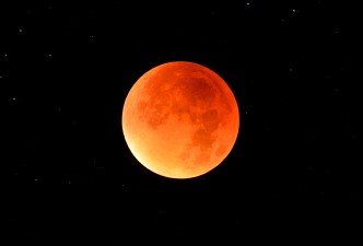 Totale Mondfinsternis und größter Vollmond des Jahres am 28.09.2015 um 4:47 Uhr. Man kann die Sterne im Hintergrund erkennen. INED 420/70, HEQ-5 Pro, TSFlat2, Fokalprojektion, Nikon D5200, 30s, ISO200 |