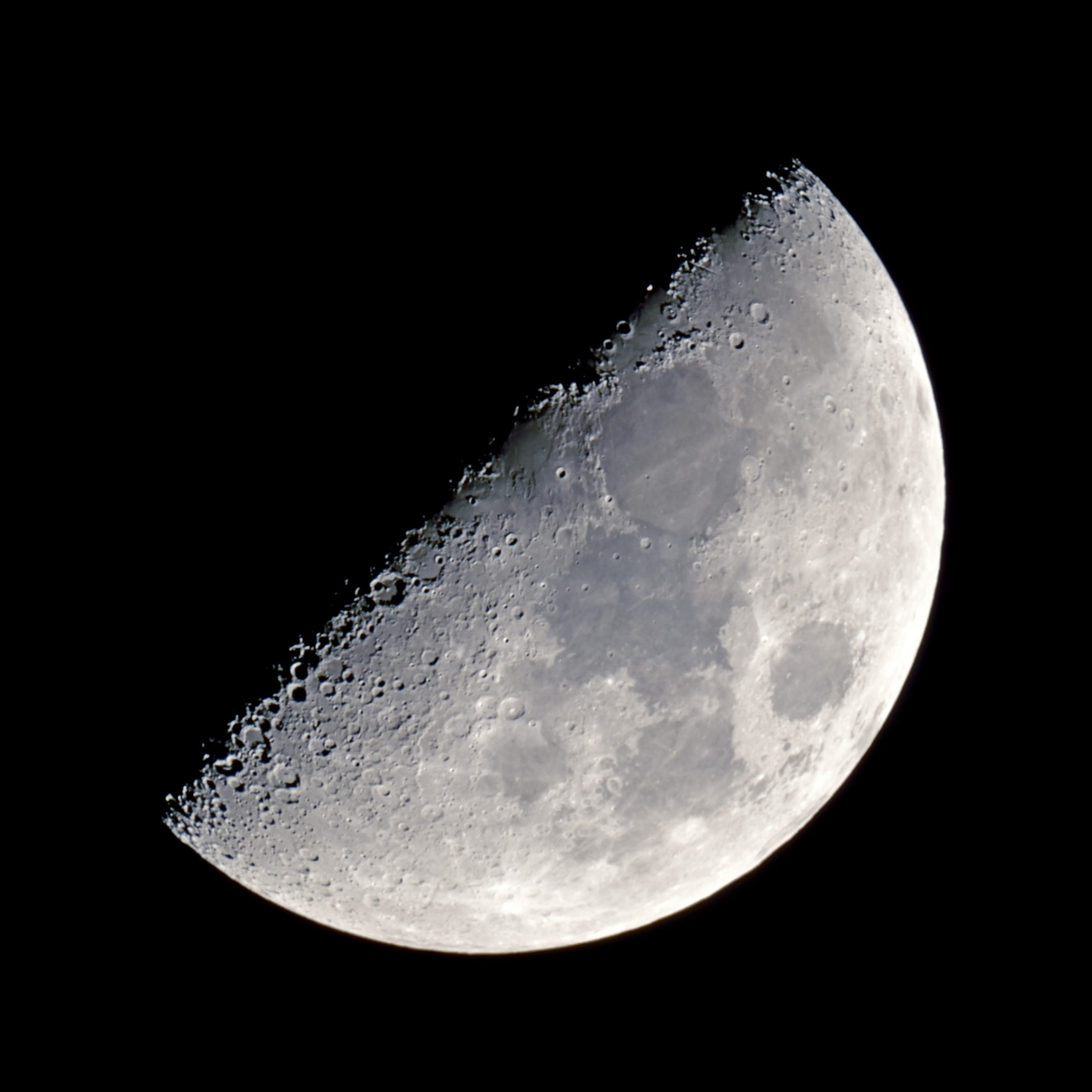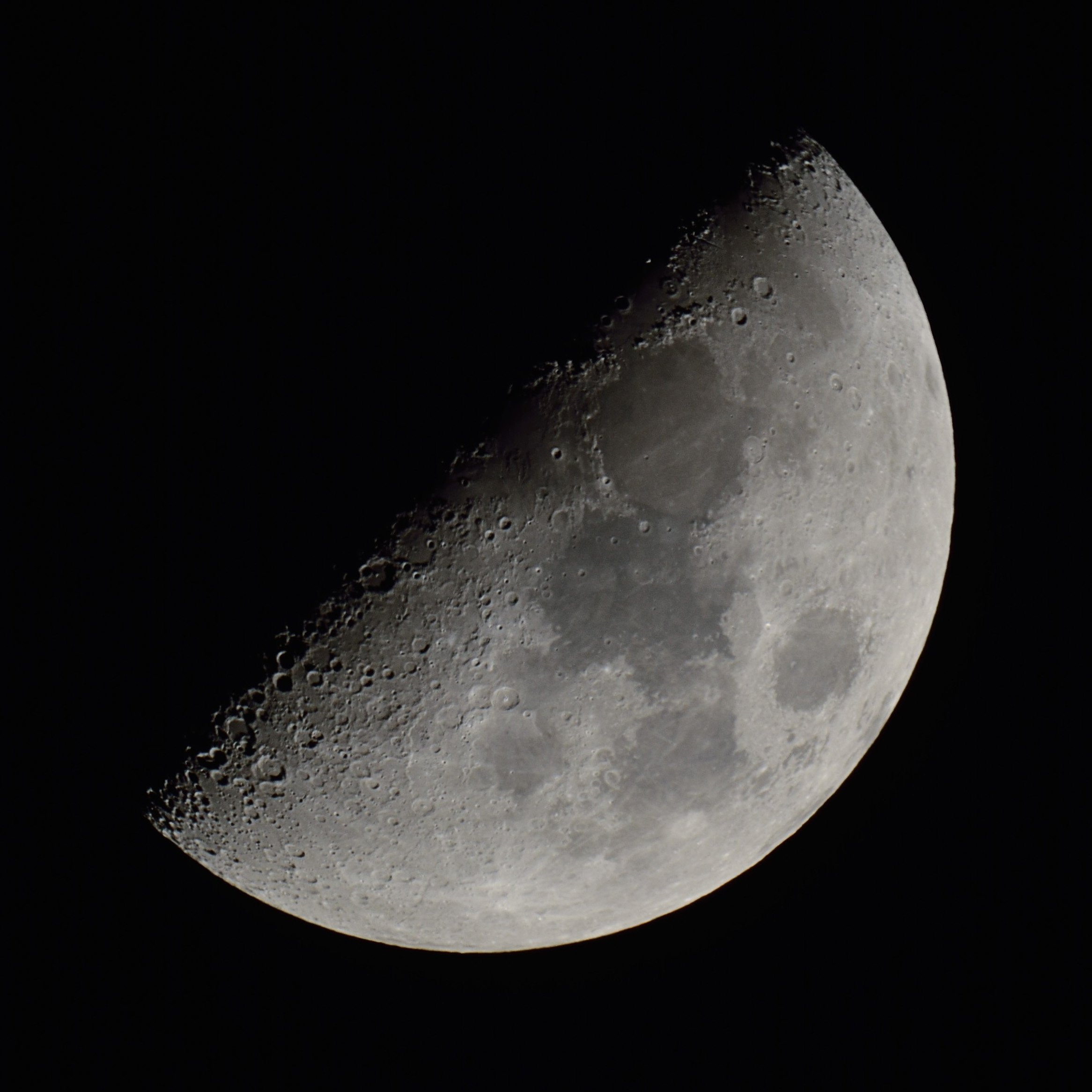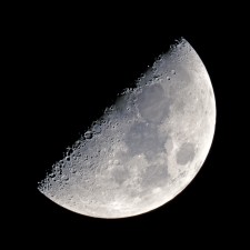 Mond 1. Viertel am 25.03.2018 um 2:26 Uhr Skywatcher N 200/1000, HEQ-5 Pro, Komakorrektor, Fokalprojektion, Nikon D5200, 1/50s, ISO100 |