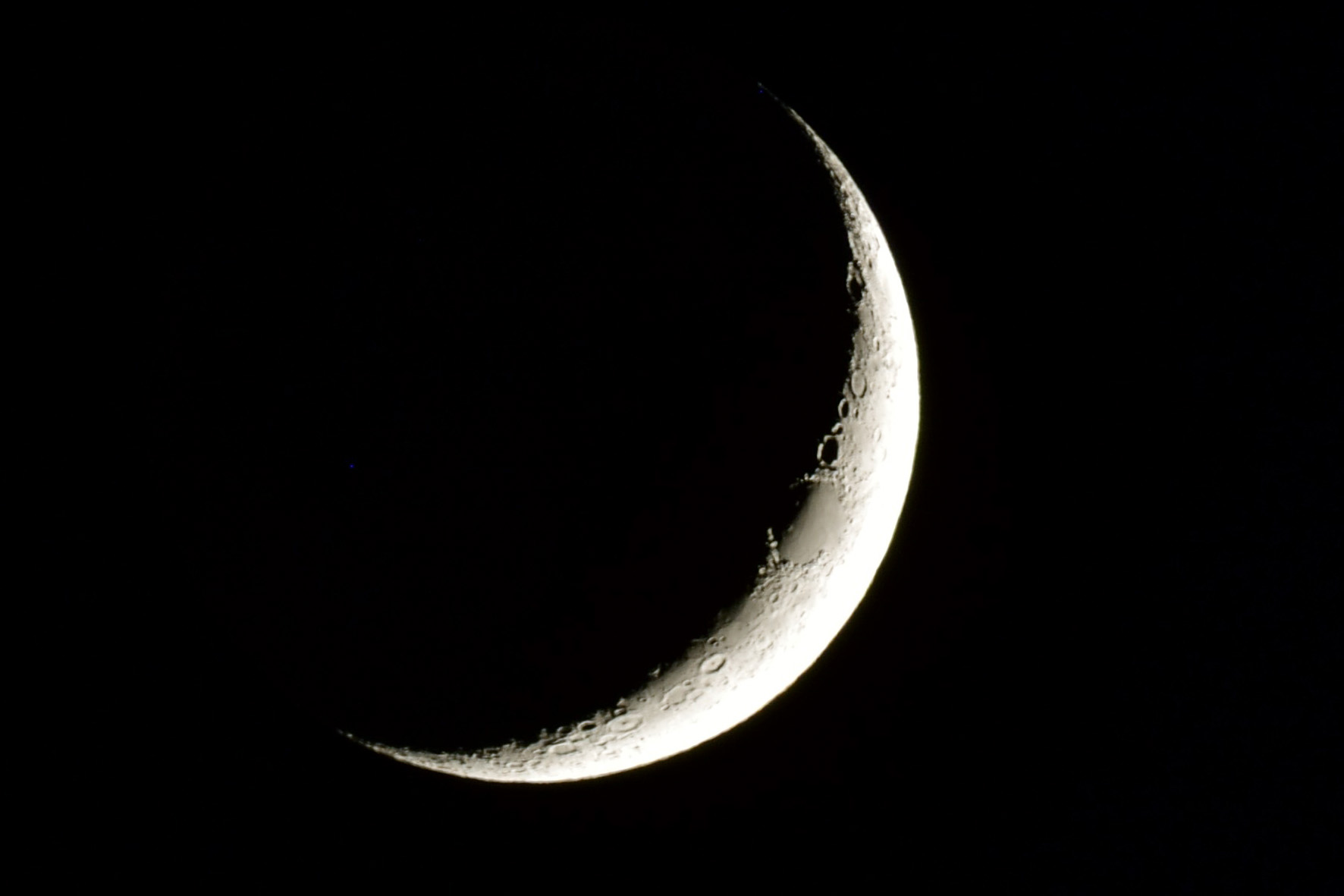 Mondsichel am 09.05.2016 um 21:48 Uhr TS INED 420/70, HEQ-5 Pro, TSFlat2, Fokalprojektion, Nikon D5200, ISO200, 1/10s |