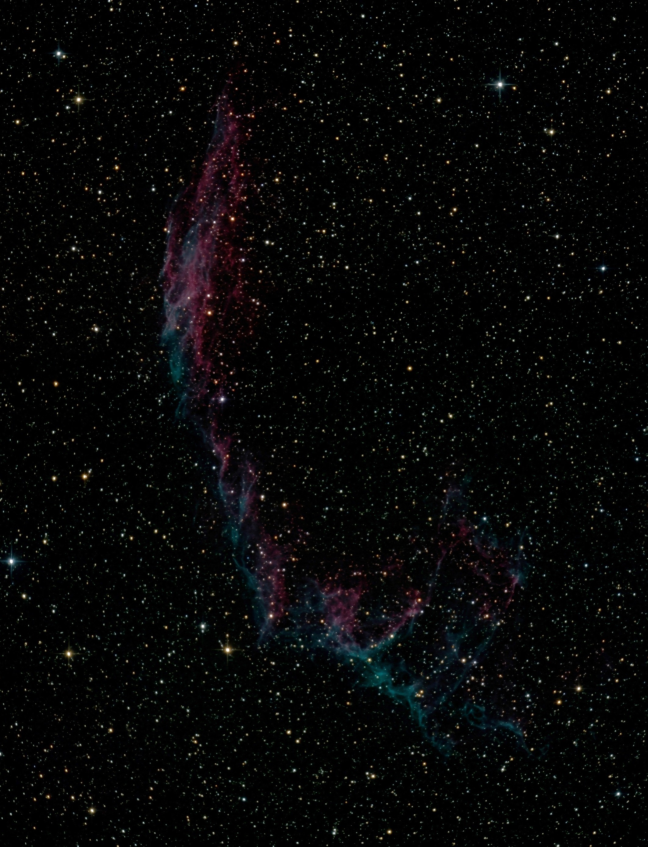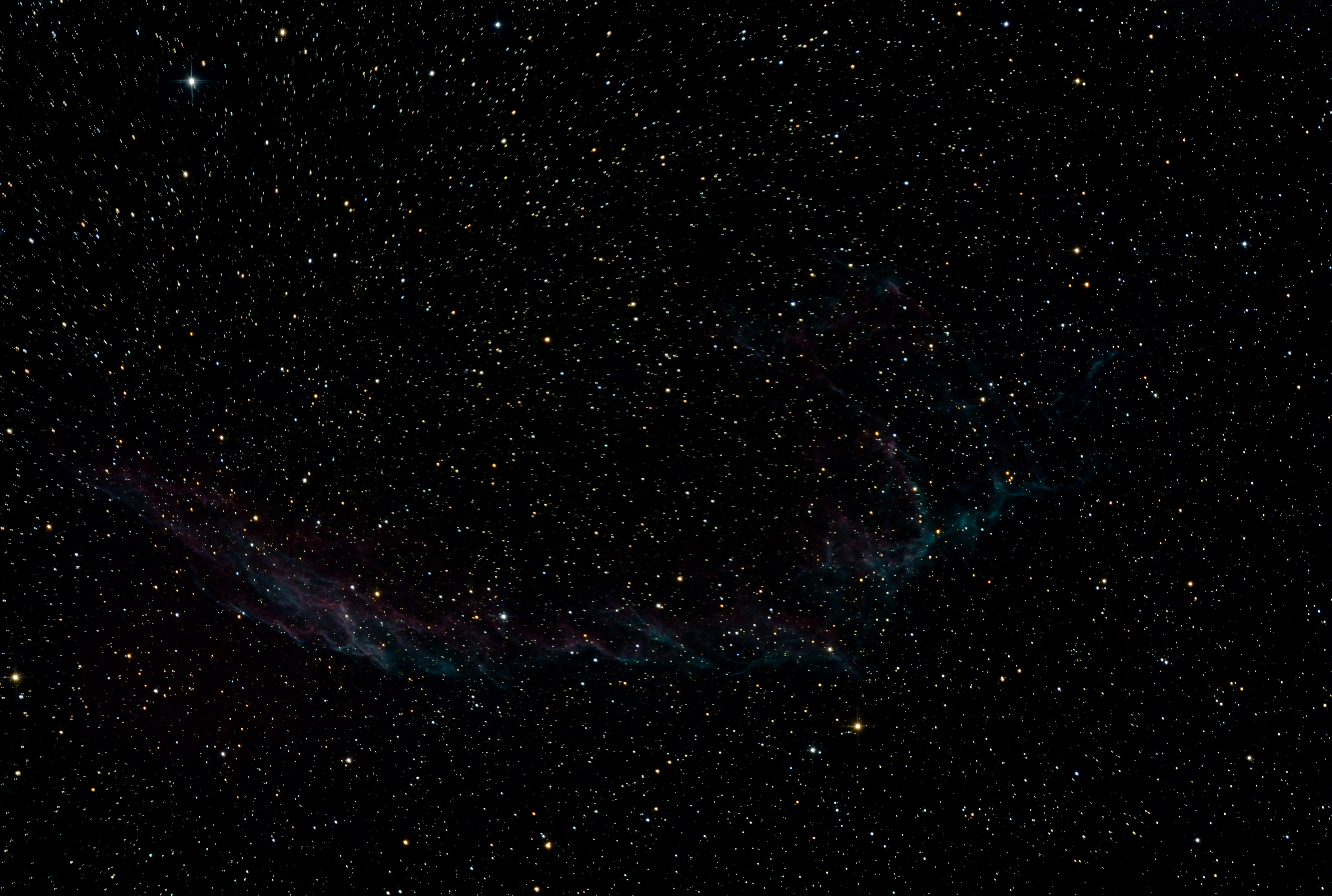 NGC 6992 - Schleier- oder Cirrusnebel Skywatcher 200/1000, HEQ-5 Pro, Komakorrektor, Fokalprojektion, Nikon D5200, 49x60s, ISO800, 22.08.2015 |