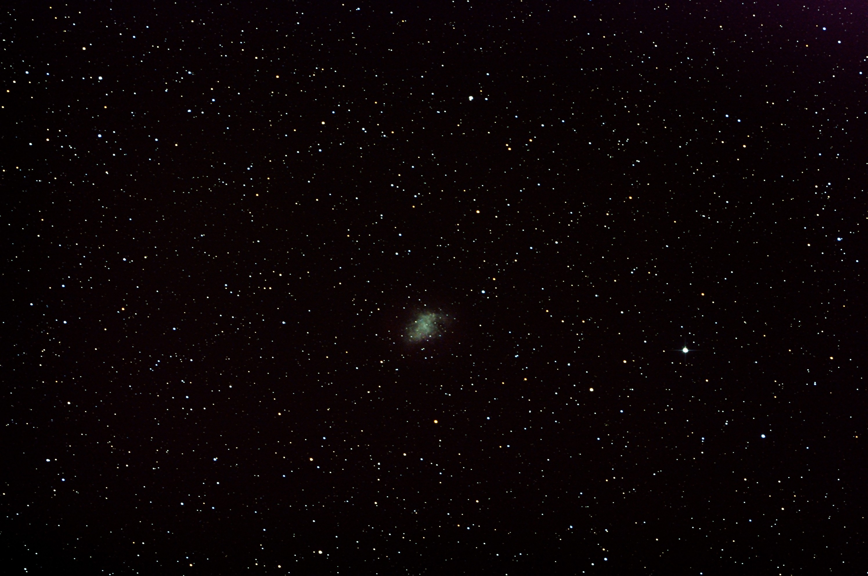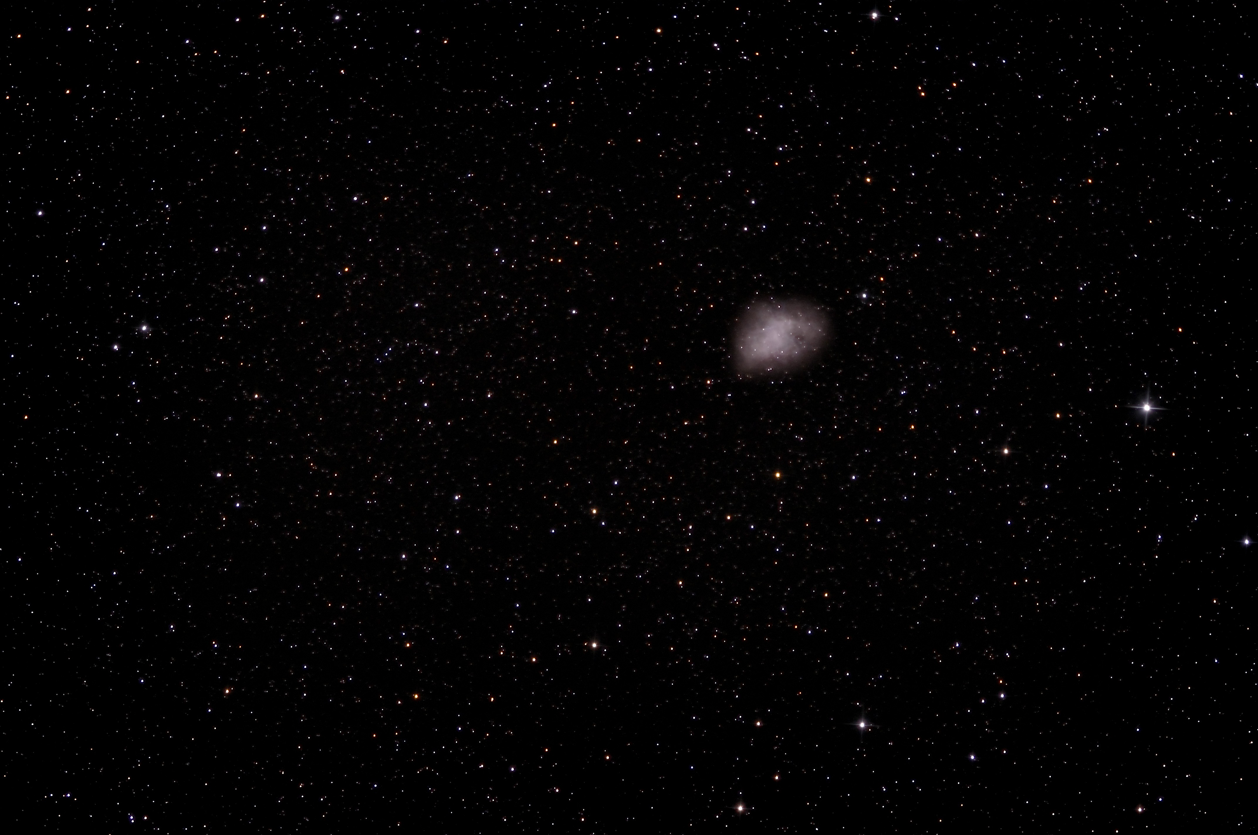 M 1 - Krebsnebel im Sternbild Stier (Supernovaüberrest) Skywatcher 200/1000, HEQ-5 Pro, Komakorrektor, Fokalprojektion, Nikon D90, 10x60s, ISO800, 13.01.2013 |