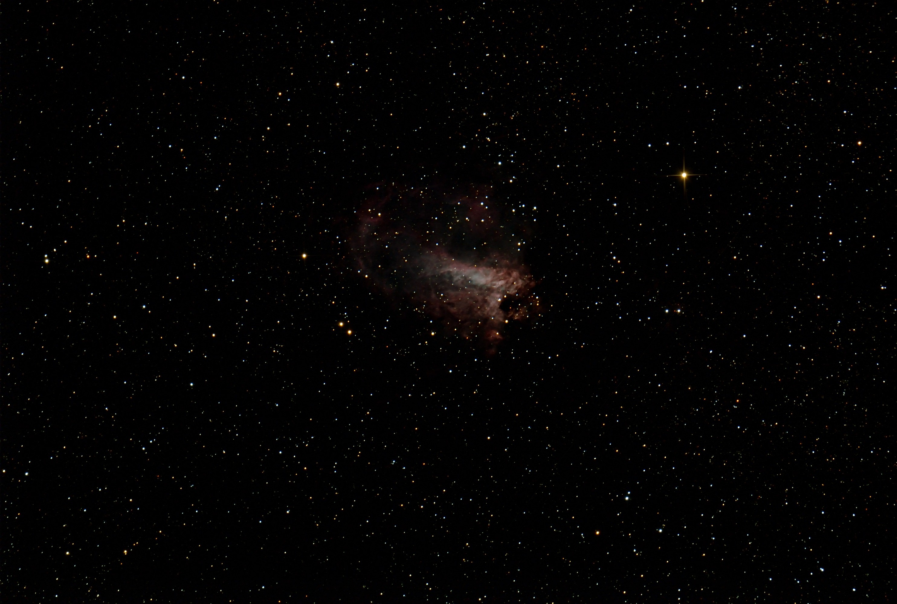 M 17 - Omeganebel, Emissionsnebel im Sternbild Schütze. Skywatcher 200/1000, HEQ-5 Pro, Komakorrektor, Fokalprojektion, Nikon D5200, 25x30s, ISO800, 02.07.2014