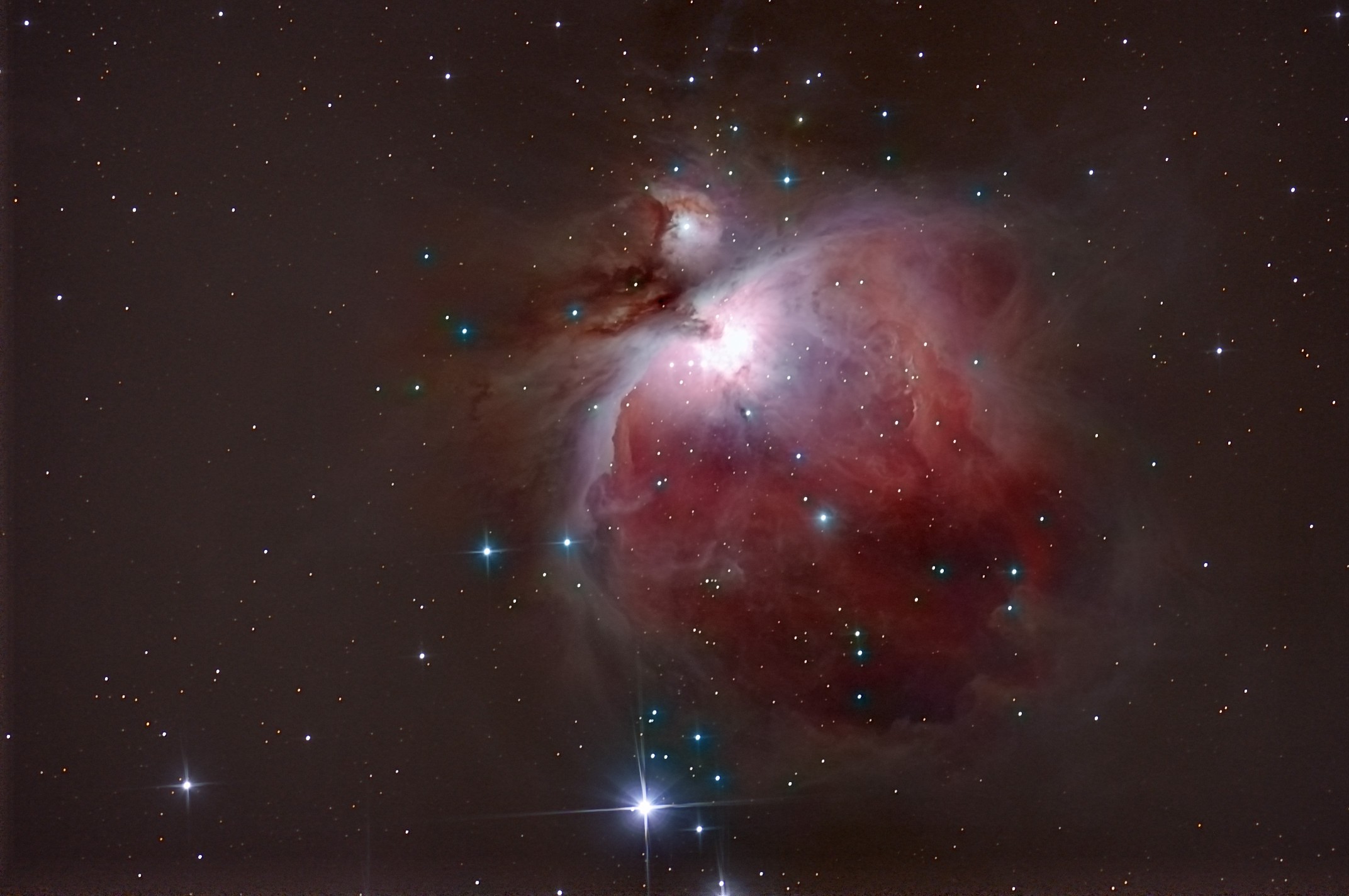 M 42 - Orionnebel (Emissionsnebel) Skywatcher 200/1000, HEQ-5 Pro, Komakorrektor, Fokalprojektion, Nikon D90, 20x60s, ISO800, 13.01.2013