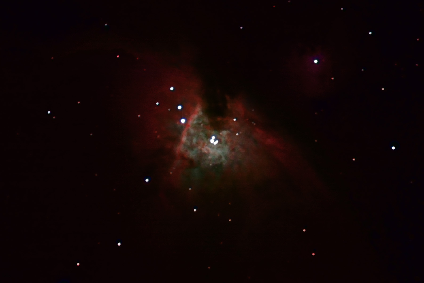 M 42 - Zentralbereich mit den Trapenzsternen Skywatcher 200/1000, HEQ-5 Pro, Komakorrektor, Fokalprojektion, Nikon 5200, 1x30s, ISO200, 16.02.2015