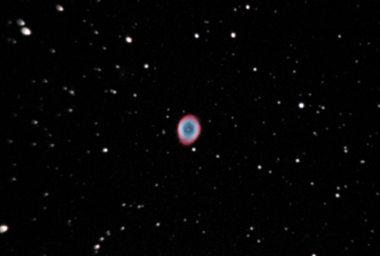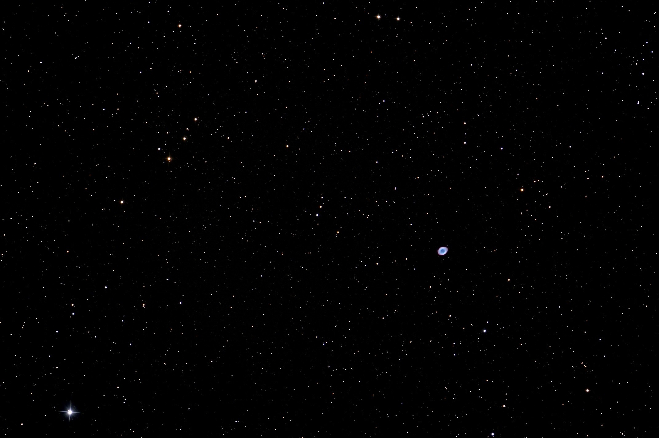 M 57 - Ringnebel im Sternbild Adler (Planetarischer Nebel) Skywatcher 200/1000, HEQ-5 Pro, Okularprojektion 15mm, Nikon D90, 20x30s, ISO800, 06.09.2013 |