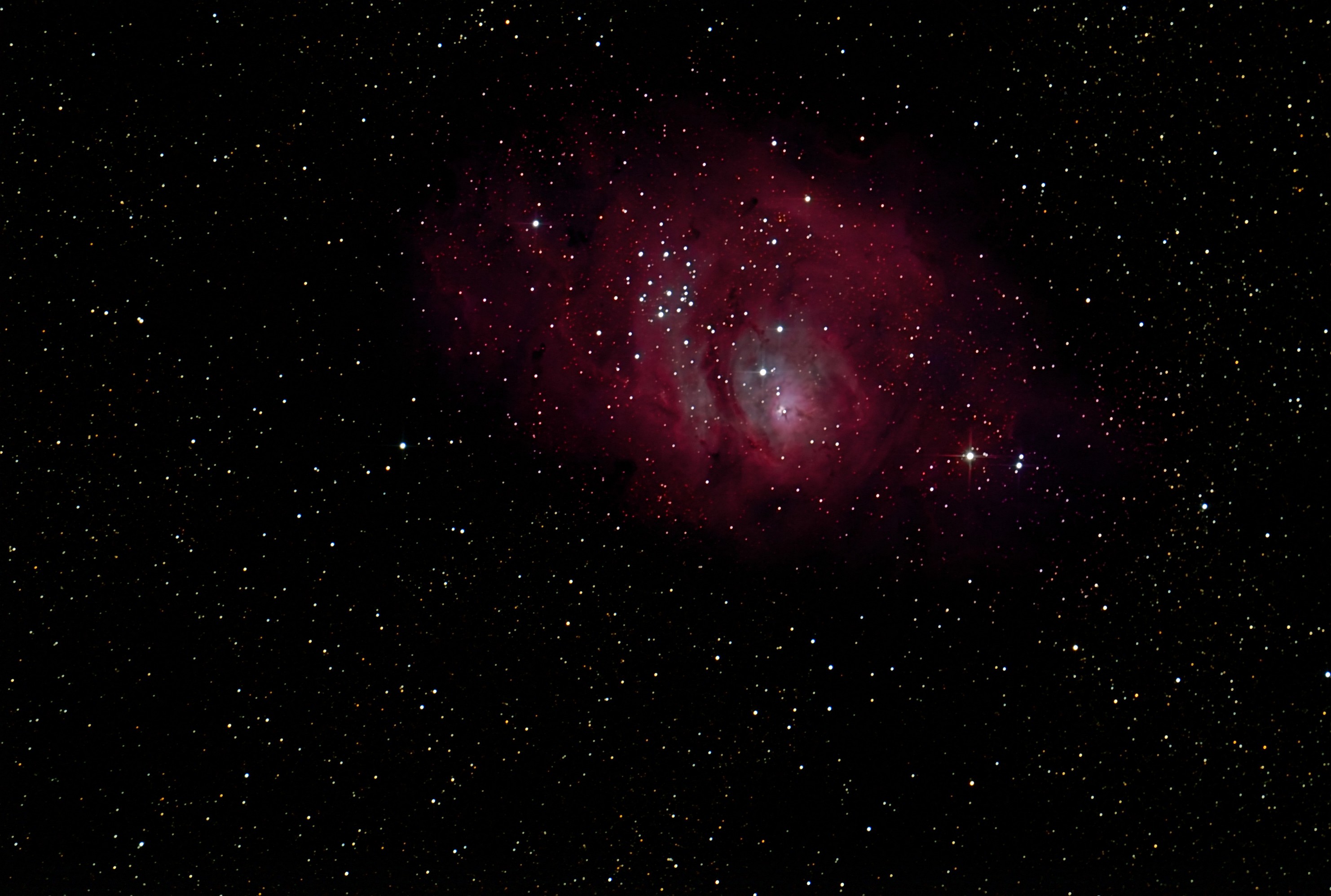 M 8 - Lagunennebel, Emissions- und Reflexionsnebel im Sternbild Schütze. Skywatcher 200/1000, HEQ-5 Pro, Komakorrektor, Fokalprojektion, Nikon D5200, 35x30s, ISO800, 02.07.2014