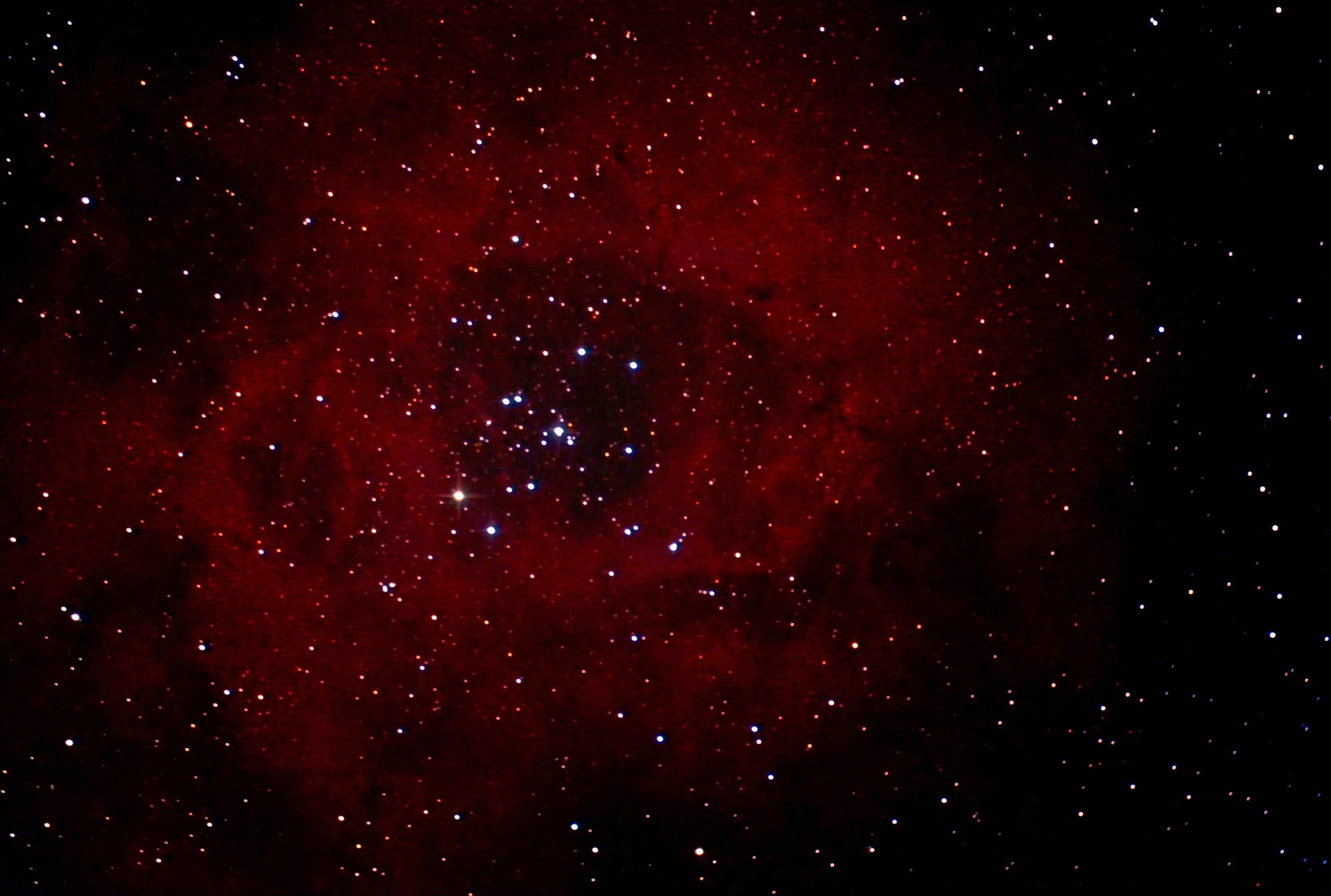 NGC 2237 - Rosettennebel Aufnahme bei nicht so guten Beobachtungsbedingungen Skywatcher 200/1000, HEQ-5 Pro, Komakorrektor, Fokalprojektion, Nikon D5200, 12x30s, ISO800, 13.01.2013 |