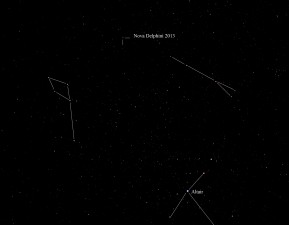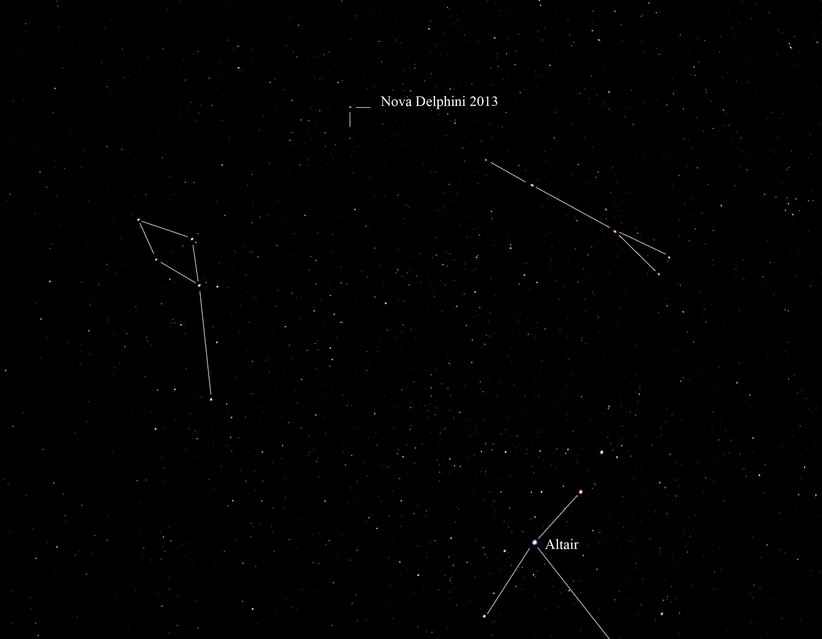 | Nova Delphini 2013 - aufgenommen am 16.08.2013 D90 huckepack auf Skywatcher 200/1000, HEQ-5 Pro, 7x60s, Blende 1.8, ISO 400 |