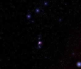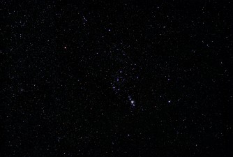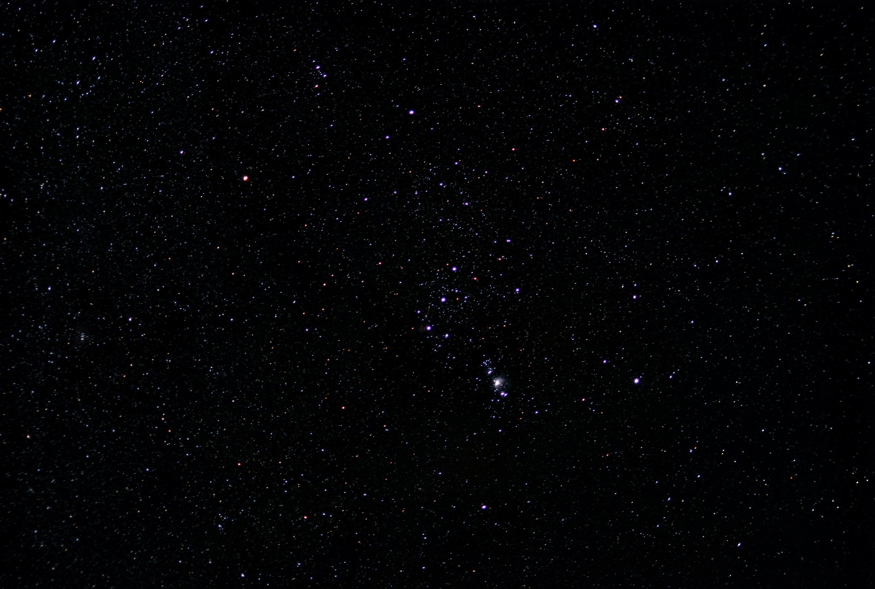 Orion mit Nebeln, Nikon D5200 mit normalem Stativ 35 mm, ISO 800, f/1.8, 15x10s am 30.12.2013 |
