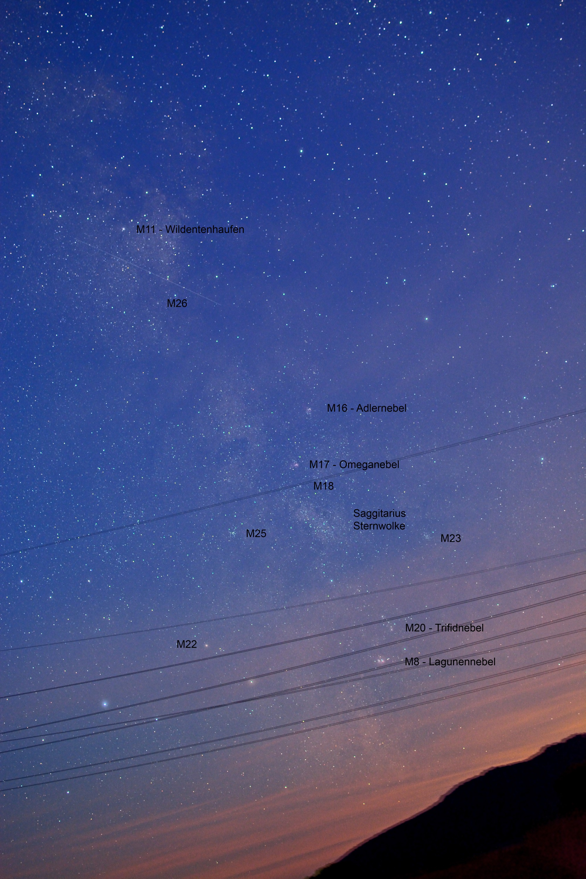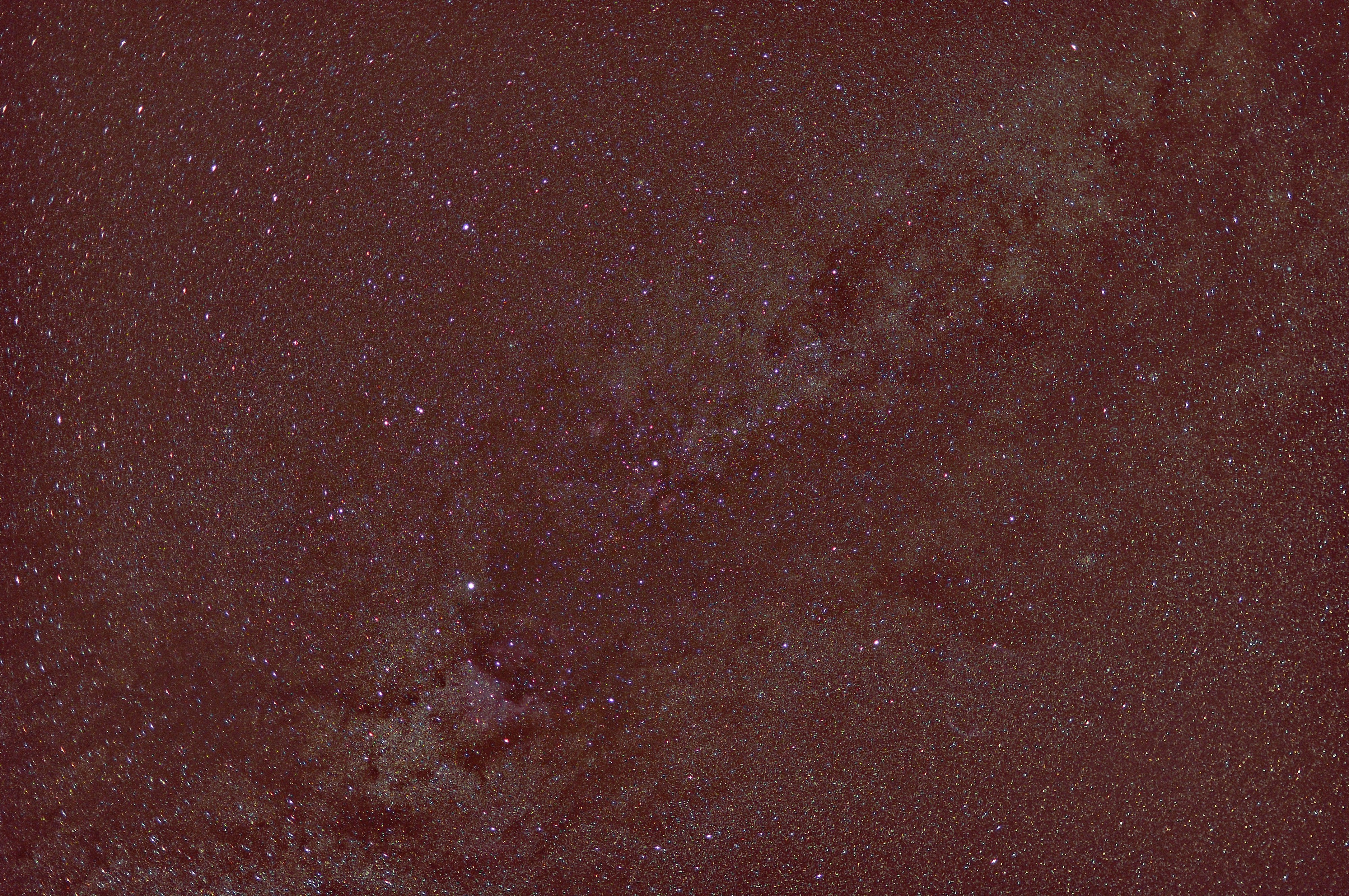 Milchstraße im Bereich Schütze Nikon D5200, 35mm, f/3.2, ISO 800, 2x30s, 02.07.2014 |