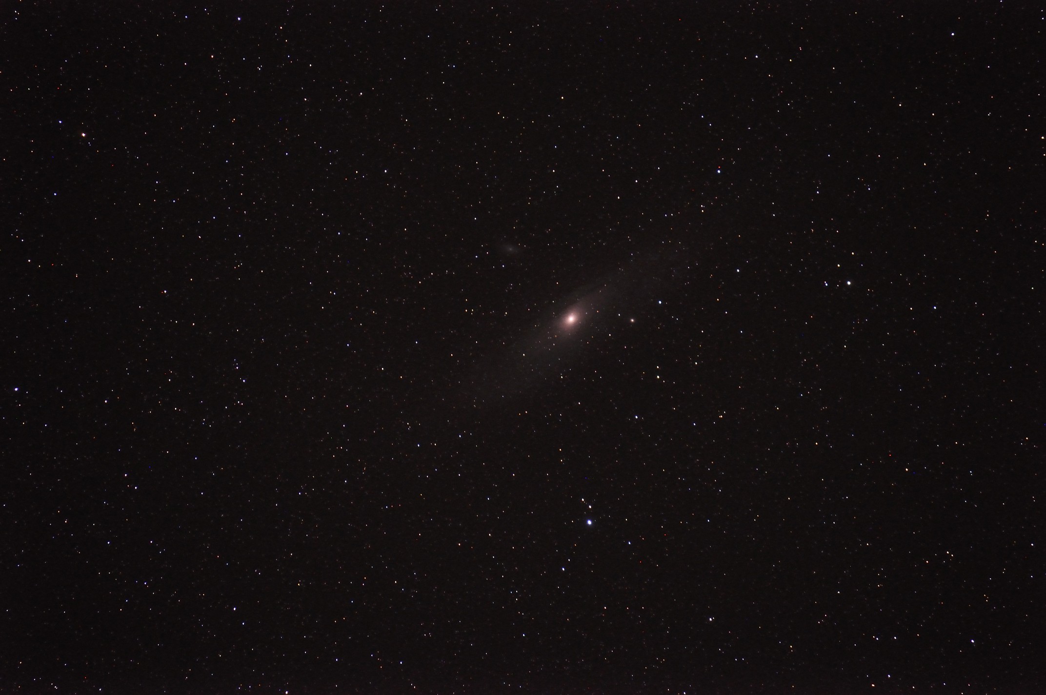M31 - Andromeda-Galaxie Nikon D90, 200 mm, f/5.6, ISO 800, 100 s, Huckepack auf Teleskop, 19.10.2014 |