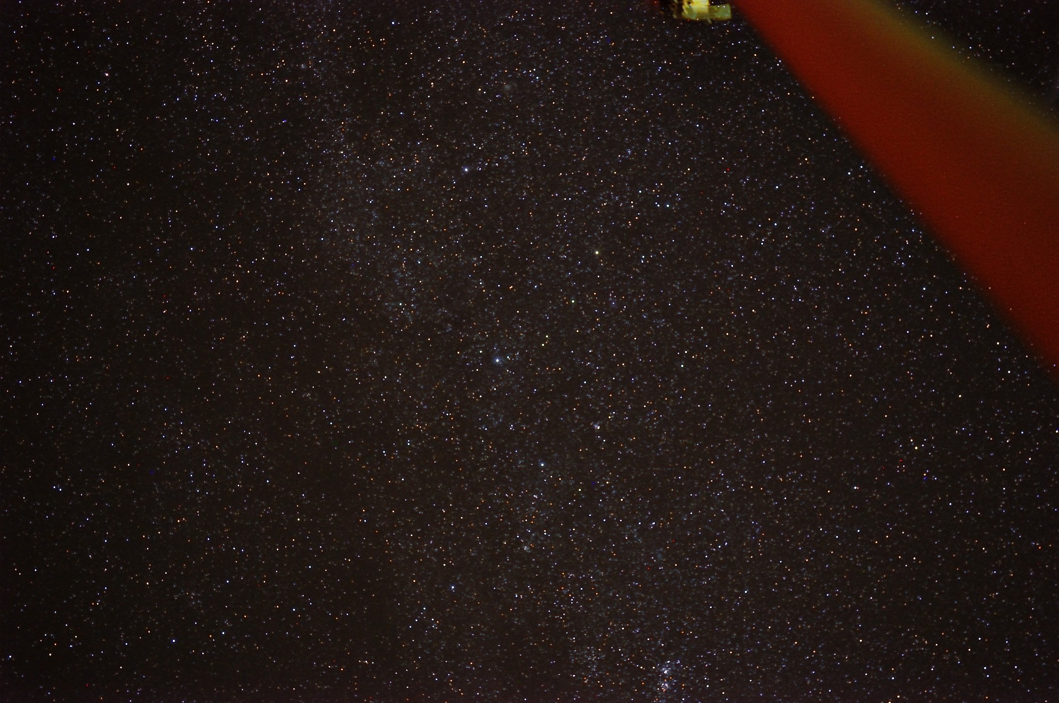 Kassiopeia-Region Nikon D90, 40 mm, f/5.3, ISO 800, 7x60 s, Huckepack auf Teleskop, 19.10.2014 |