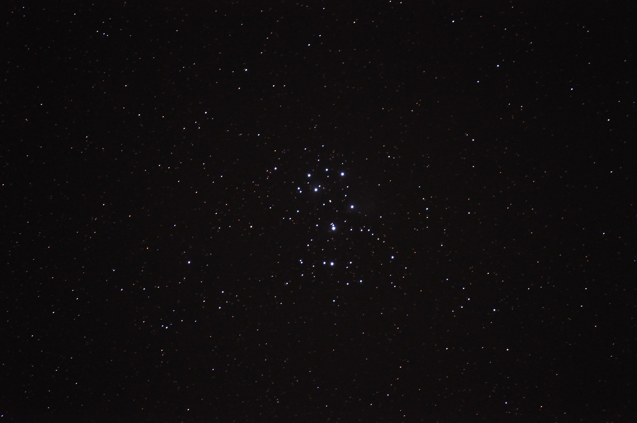 M44 - Plejaden Nikon D90, 200 mm, f/5.6, ISO 800, 64 s, Huckepack auf Teleskop, 19.10.2014 |