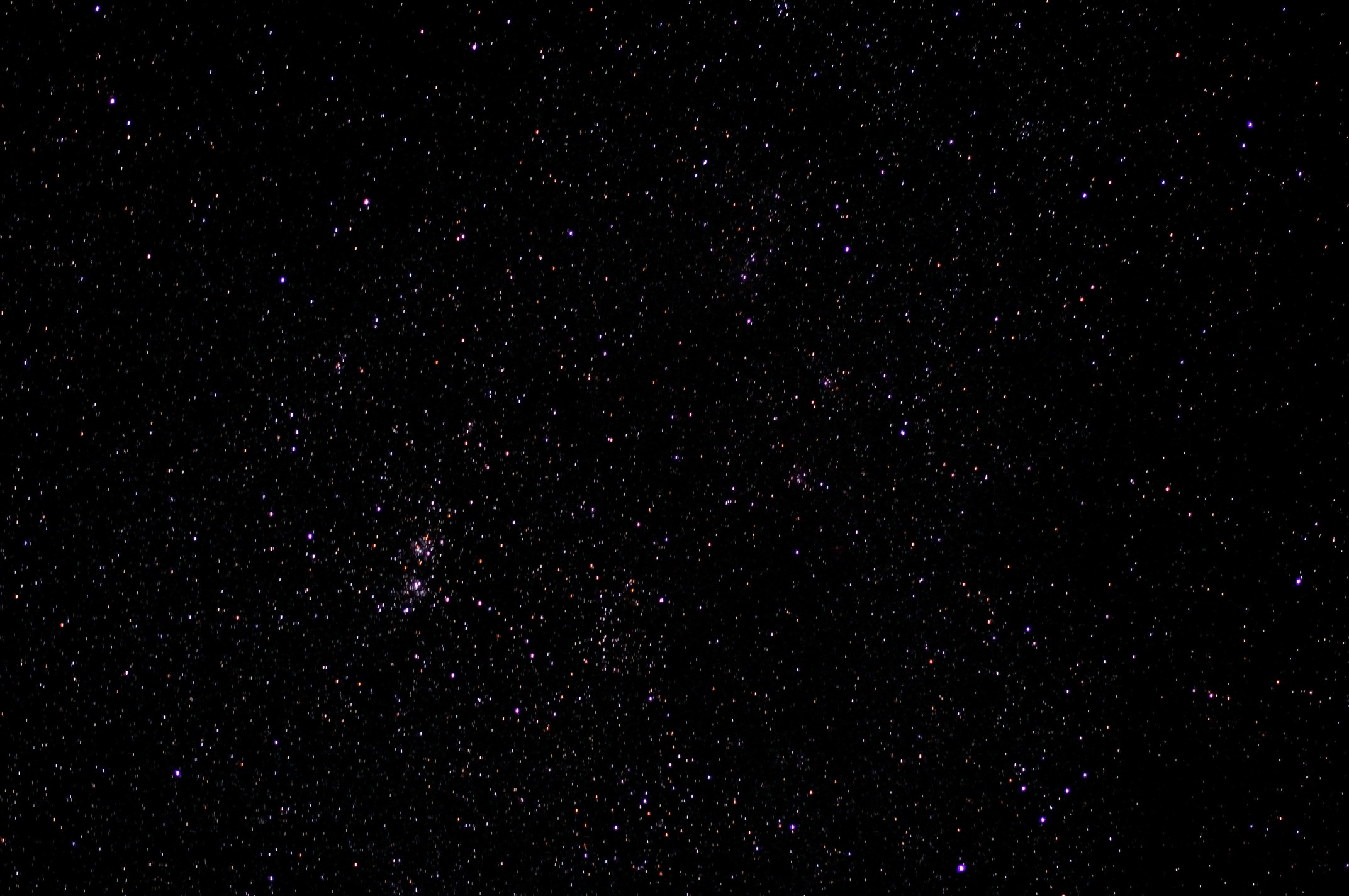 Doppelsternhaufen h und chi Persei Nikon D90, 85mm, f/1.8 ISO800, 1x10s, 16.02.2015 |