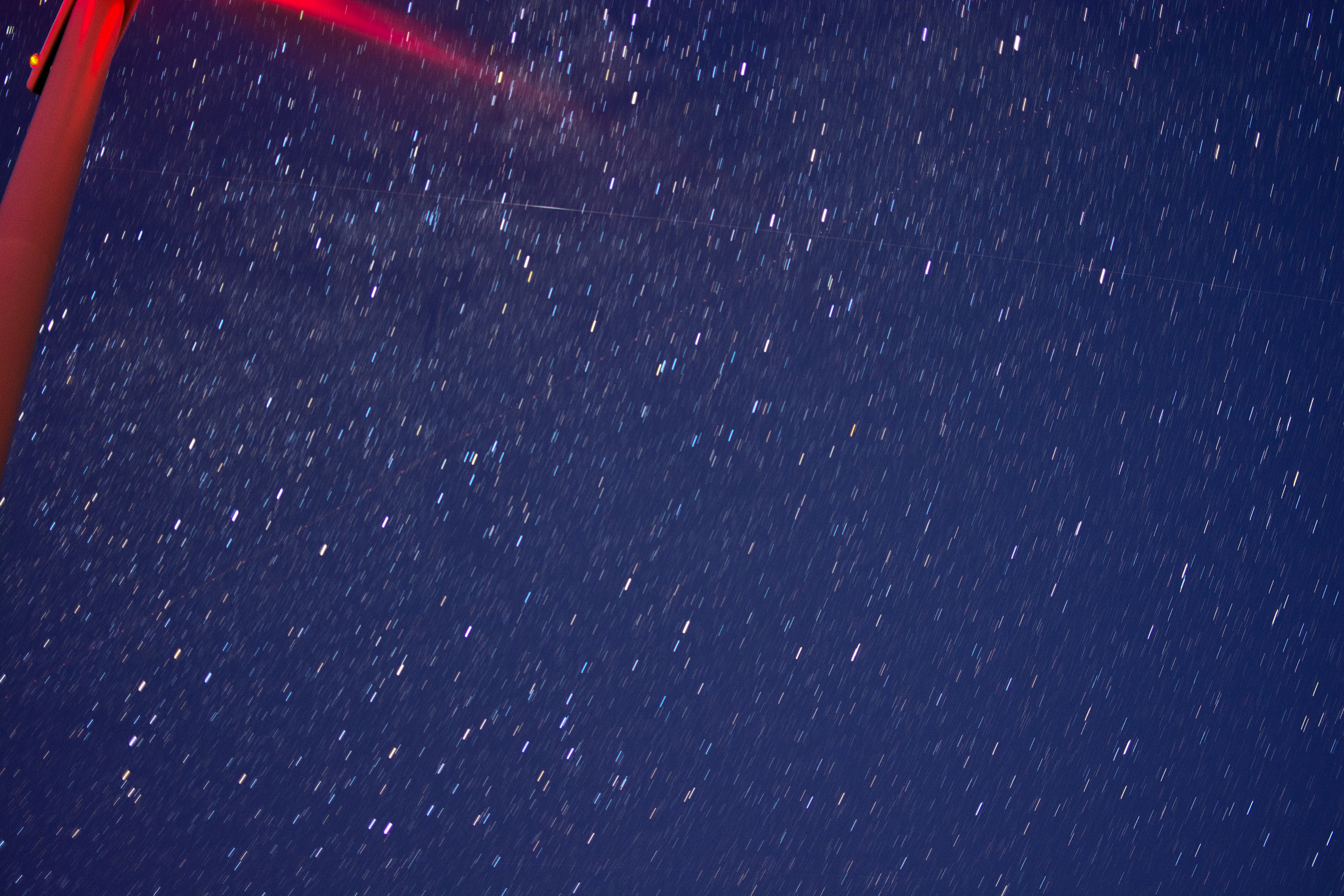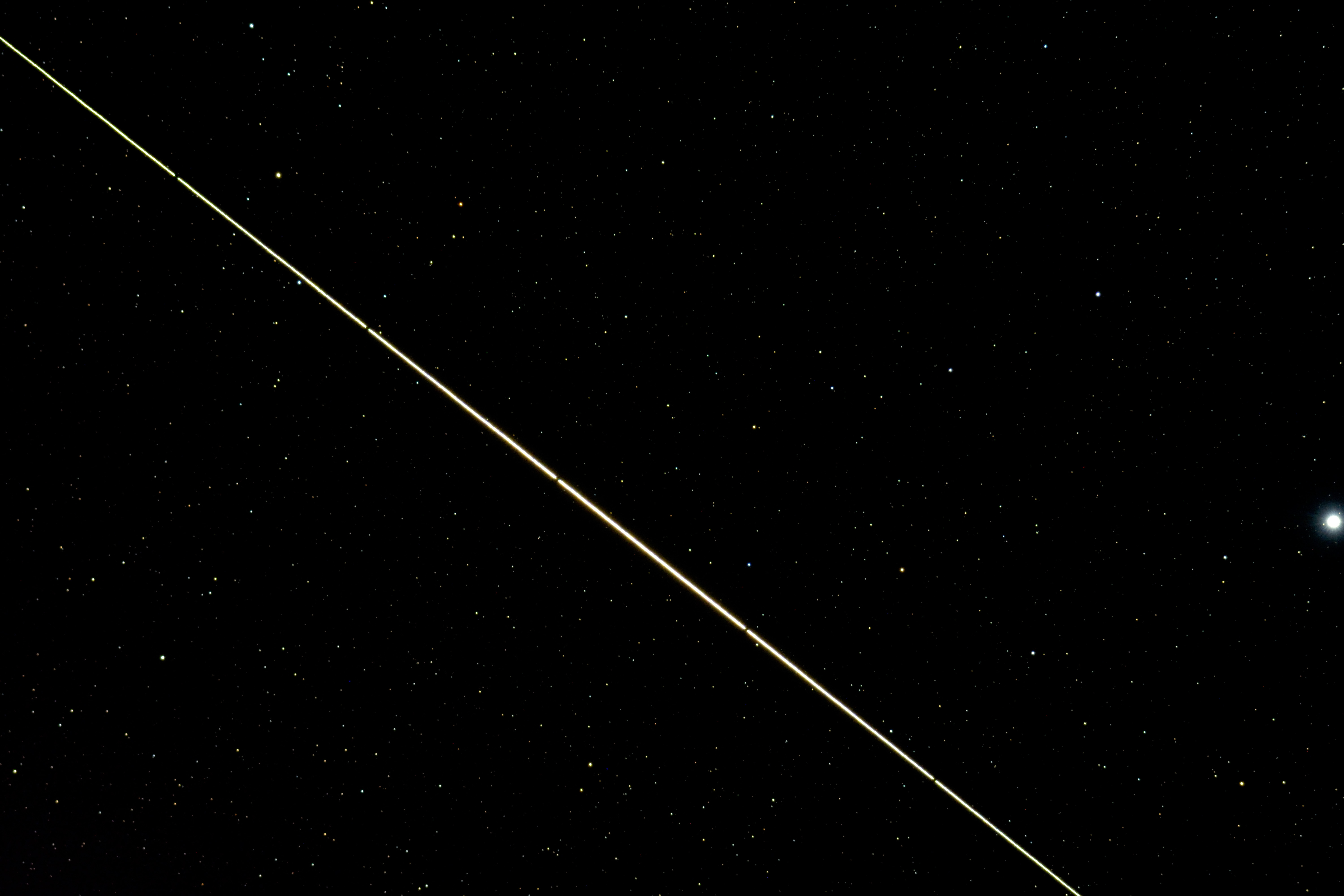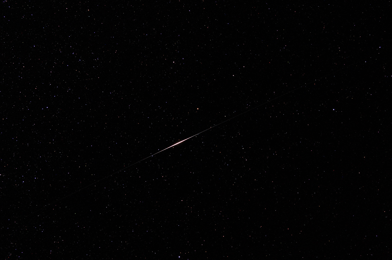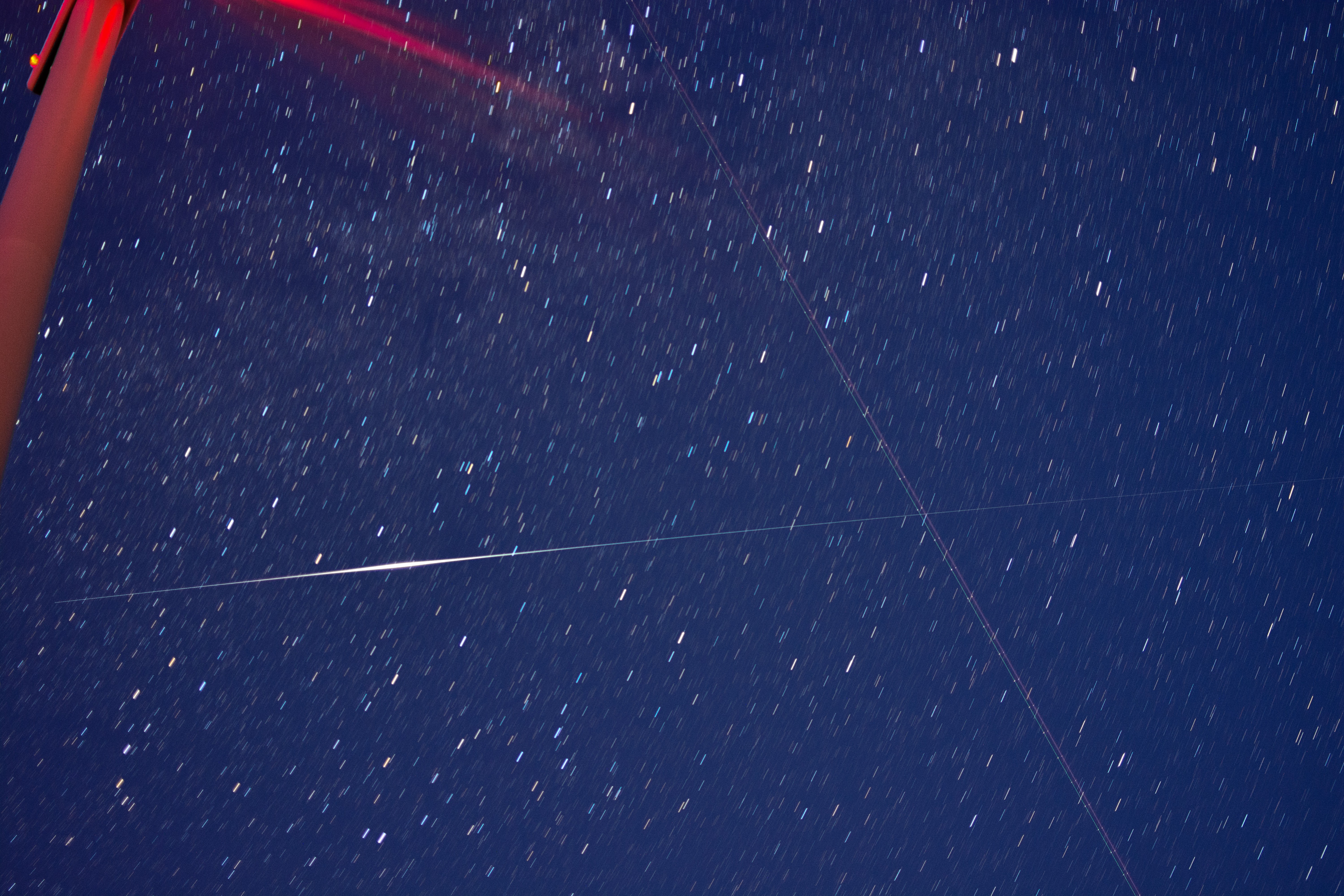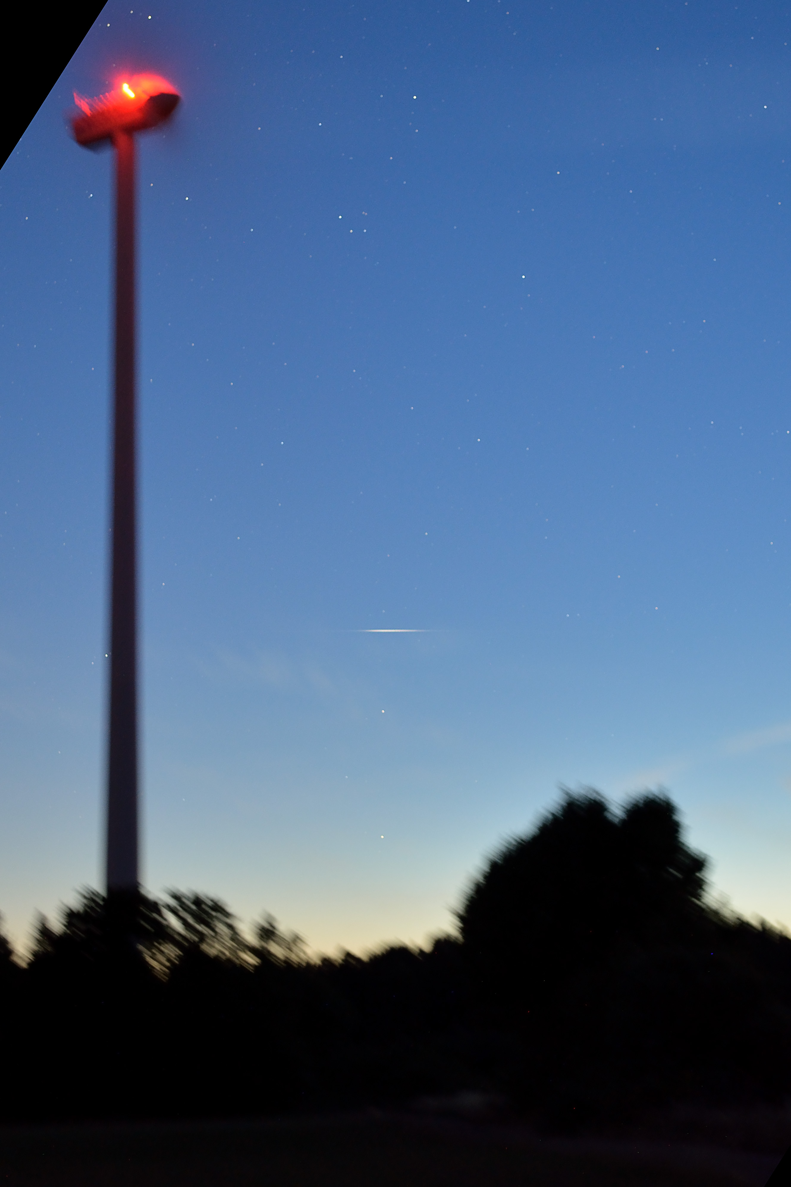 Iridium 47 mit Refraktor TS INED 420/70, 65s, ISO800. Die Unterbrechungen der Spur stammen von den Flügeln eines Windrades. |