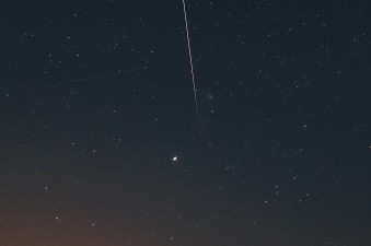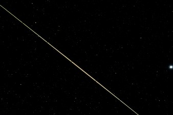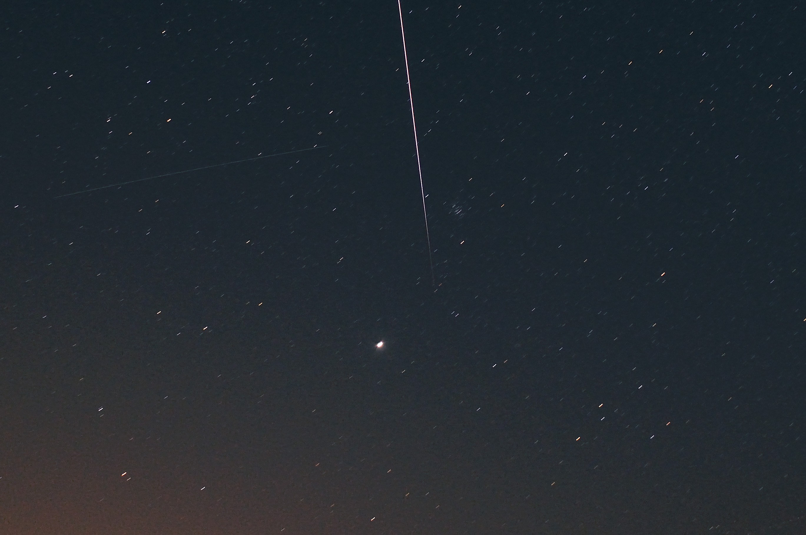 Flares von Iridium 6 und 51 am 24.07.2015 um 23:01 Uhr, zwei Spuren übereinander, WNW im Sternbild Haar der Berenike, beobachtet in Lummelunda, Gotland Nikon D5200, 35 mm, f/1.8, 35s, ISO200 |