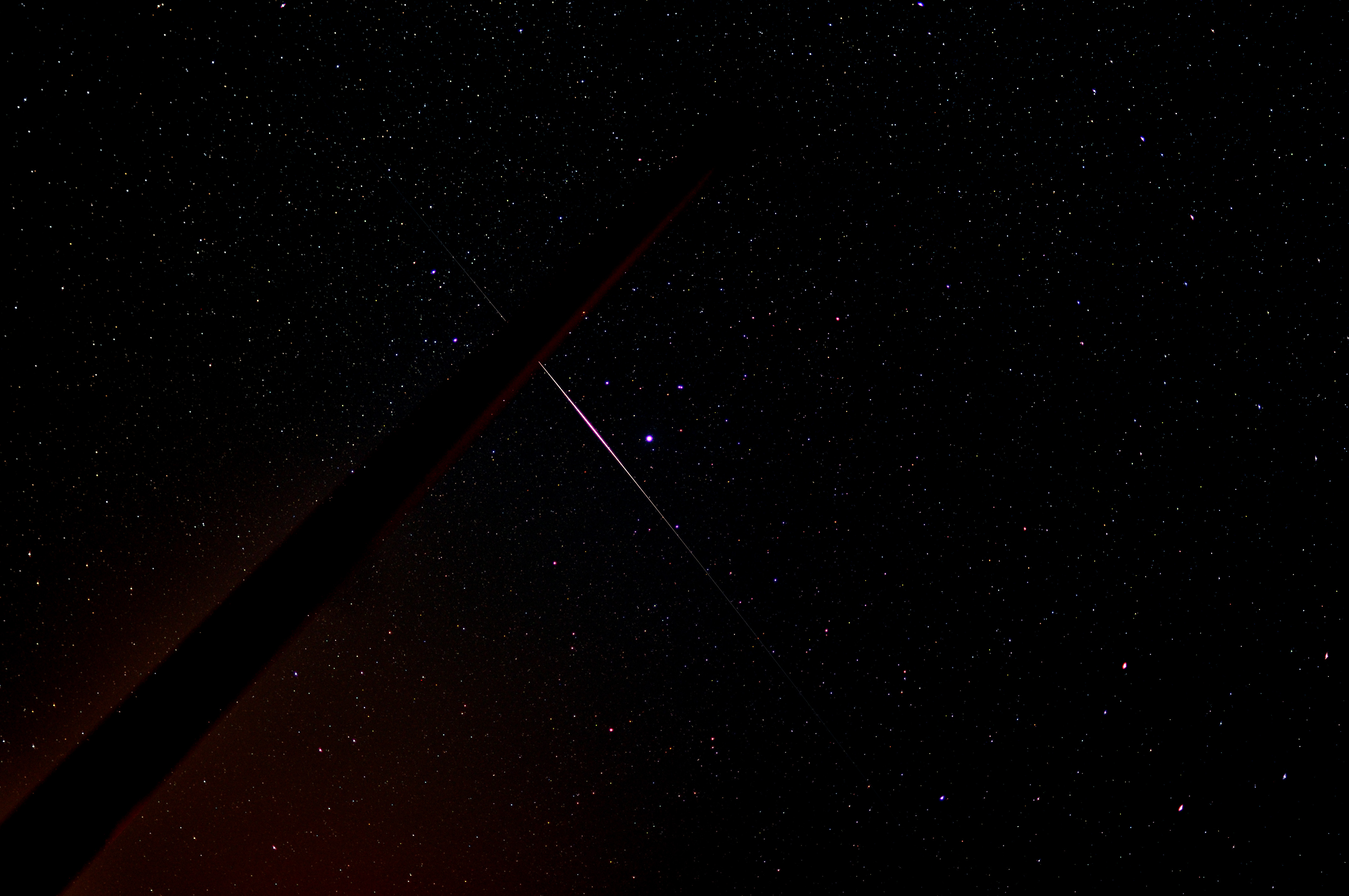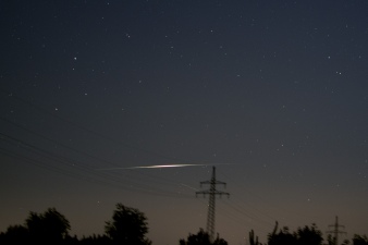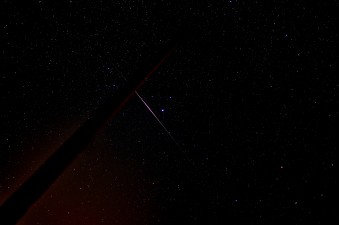 Flare von Iridium 55 am 10.07.2015 um 23h16m39s, -5,4mag in WNW, Nikon D5200 (huckepack auf Skywatcher), 35 mm, 61s, ISO400, f/5 |