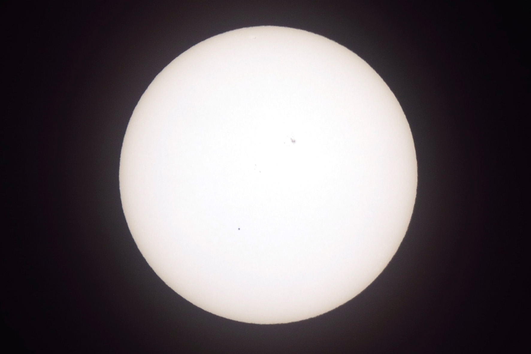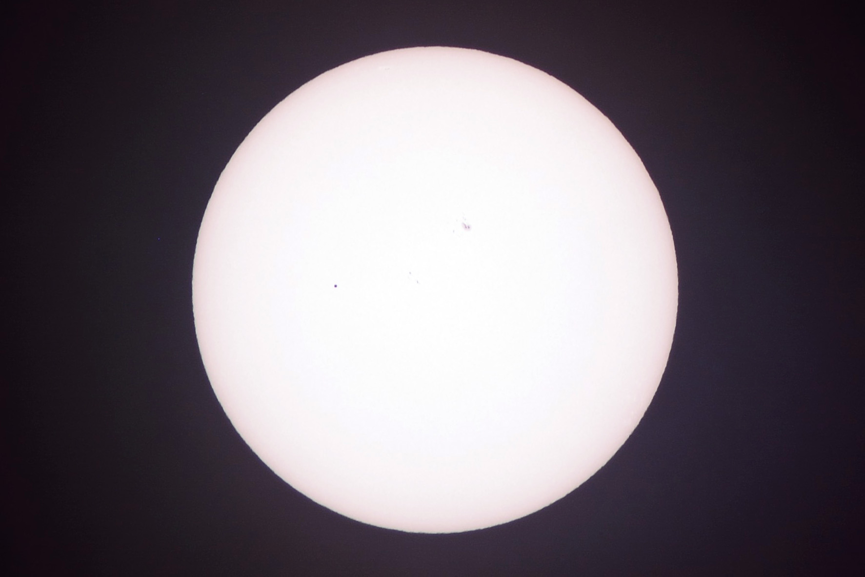 Merkur vor der Sonne am 09.05.2016 um 18:02 Uhr TS INED 70/420, HEQ-5 Pro, TSFlat2, Fokalprojektion, Sonnenfilter Nikon 5200, 1/500s, ISO 100 |
