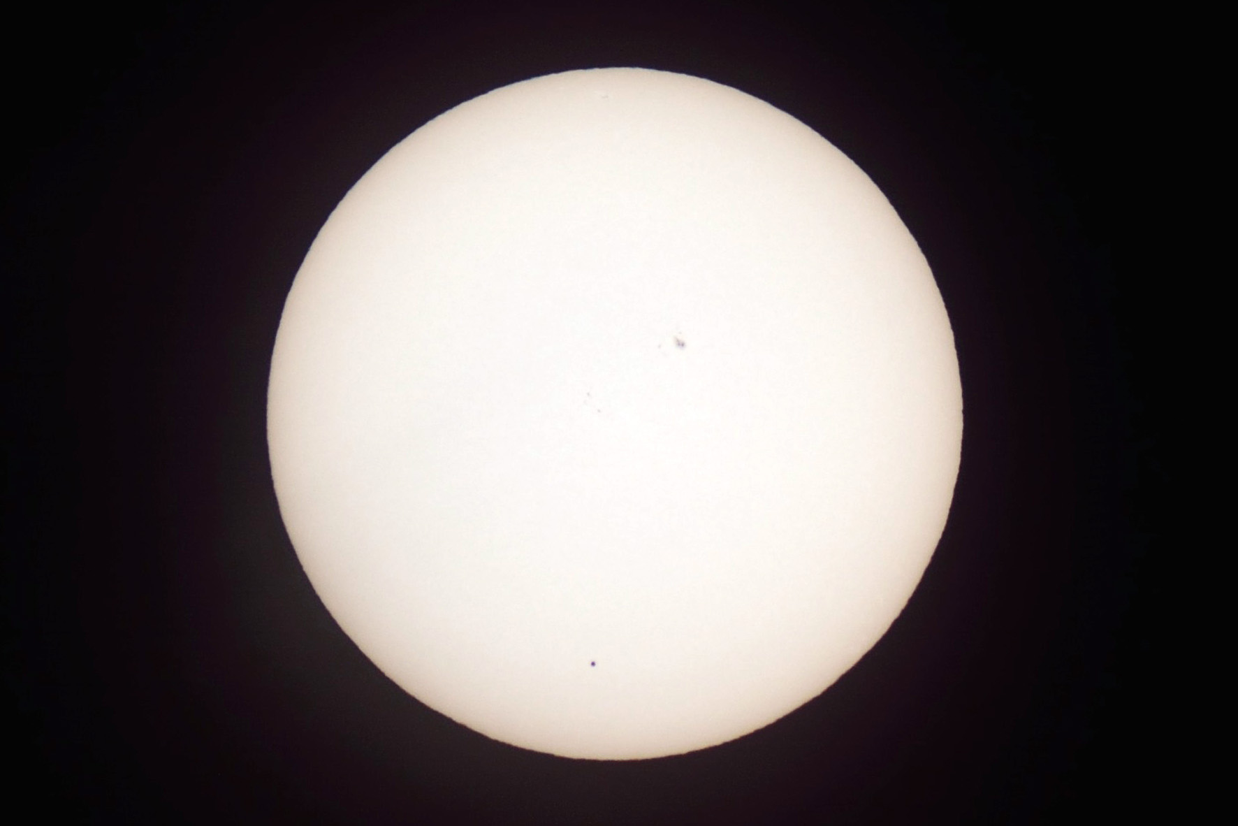 Merkur vor der Sonne am 09.05.2016 um 19:39 Uhr TS INED 70/420, HEQ-5 Pro, TSFlat2, Fokalprojektion, Sonnenfilter Nikon 5200, 1/500s, ISO 100 |