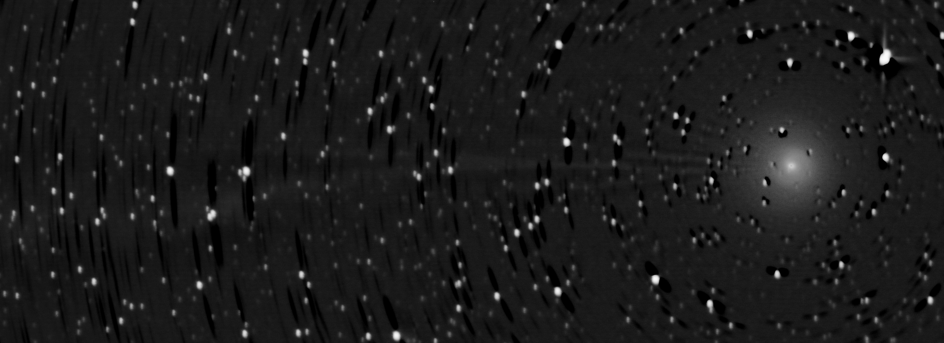 C/2014 Q2 - mit Larson-Sekanina Filter am 13.02.2015 Skywatcher N 200/1000, HEQ-5 Pro, Komakorrektor, Fokalprojektion, Nikon 5200, 19x30s, ISO800 |